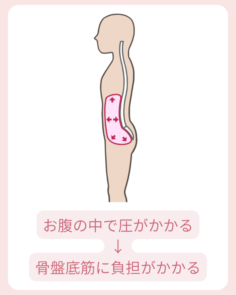 これは、体重が増えた事でお腹の中で圧がかかり、骨盤底筋に負荷がかかってしまっています。