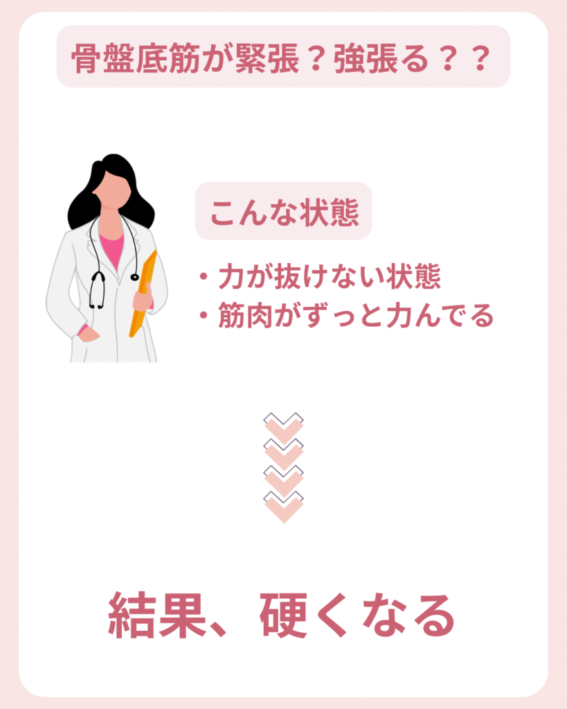 というイメージが強いですが、実は骨盤底筋は緊張状態になり、強張る状態にもなるんです。