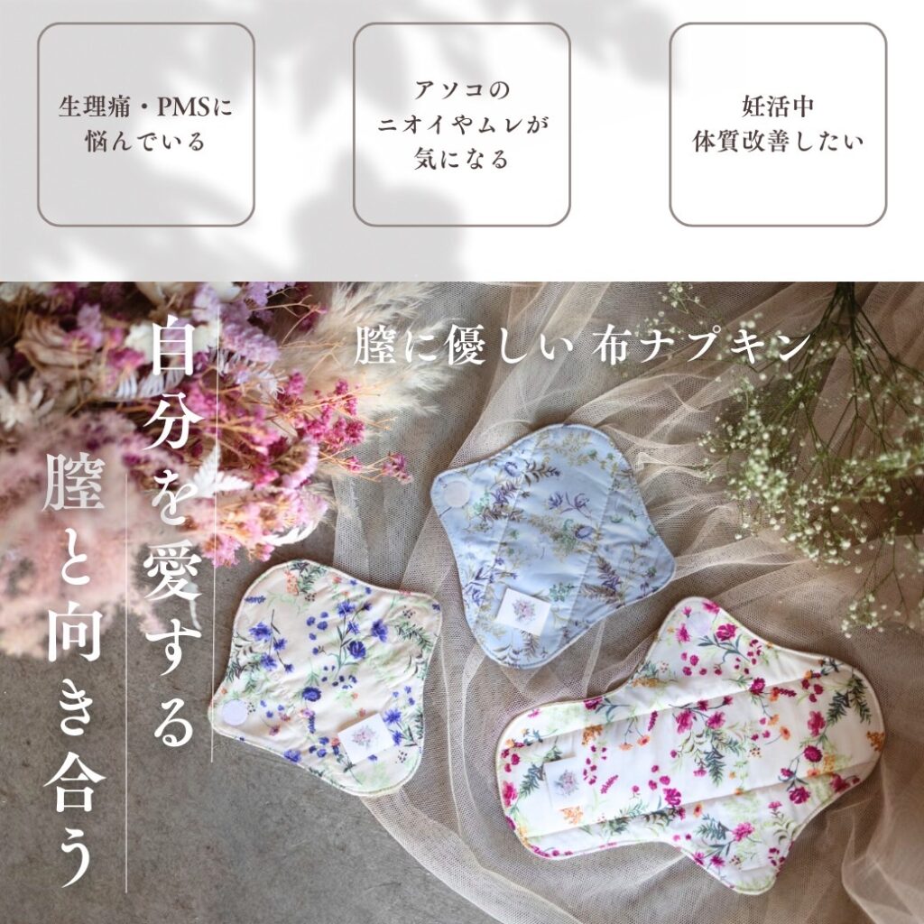 オーガニックコットンを使用した、膣にやさしい布ライナーです。